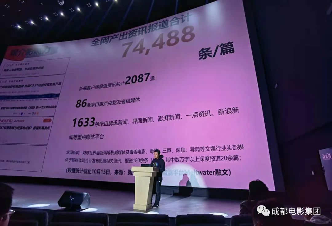 年終大會(huì)上“FIRST成都驚喜影展”項(xiàng)目由金沙院線董事長賴崇雷同志對全體員工進(jìn)行分享和介紹,總結(jié)此次項(xiàng)目成果及收獲。